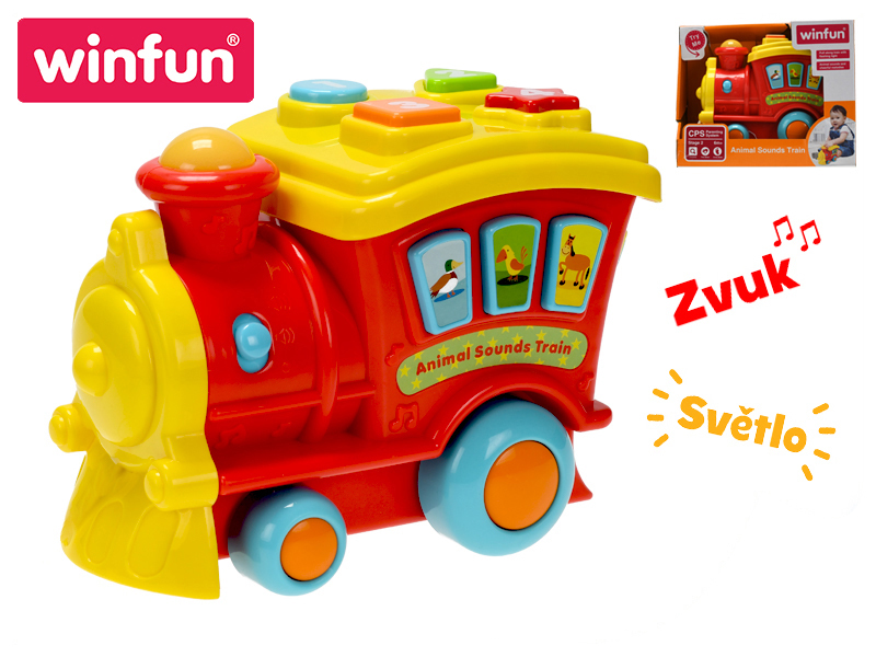 Lokomotiva edukační 21cm na baterie se světlem a zvukem zvířátek 6m+ v krabičce