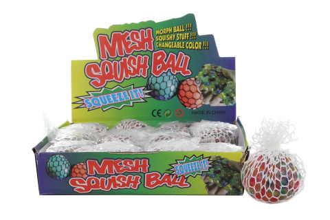 Antistresový mačkací míček v síťce,ze které vylézá hmota. Rozměr cca 8 cm. Věk 3+ prečítať celé