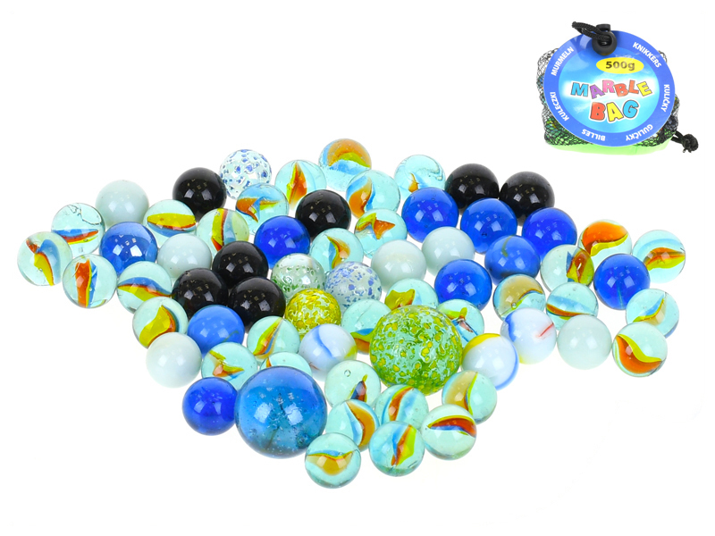 Kuličky skleněné 70x16mm 4x25mm 1x35mm 500gr v síťce