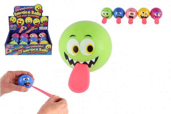 Míček smajlík s jazykem gumový 5cm na baterie se světlem 5 barev 12ks v boxu