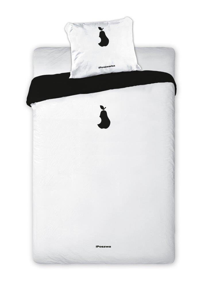 Stylowa pościel młodzieżowa w kolorze czarno-białym posiada niewielki nadruk ugryzionej gruszki i napis iPoszwa/iPoszewka. Taka pościel spisze się wzorowo, zapewniając spokojny sen pasjonatom nowoczesnych technologii. Najwyższej jakości bawełniana pościel posiada certyfikat Oeko-Tex Standard 100,...