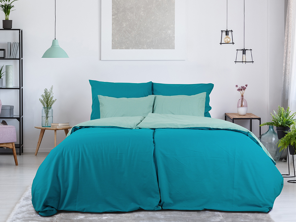 B.E.S. - Petrovice, s.r.o. Povlečení BAVLNA Double face hotelový uzávěr - Tyrkys/Olivová Rozměr: 140 x 220 + 70 x 90