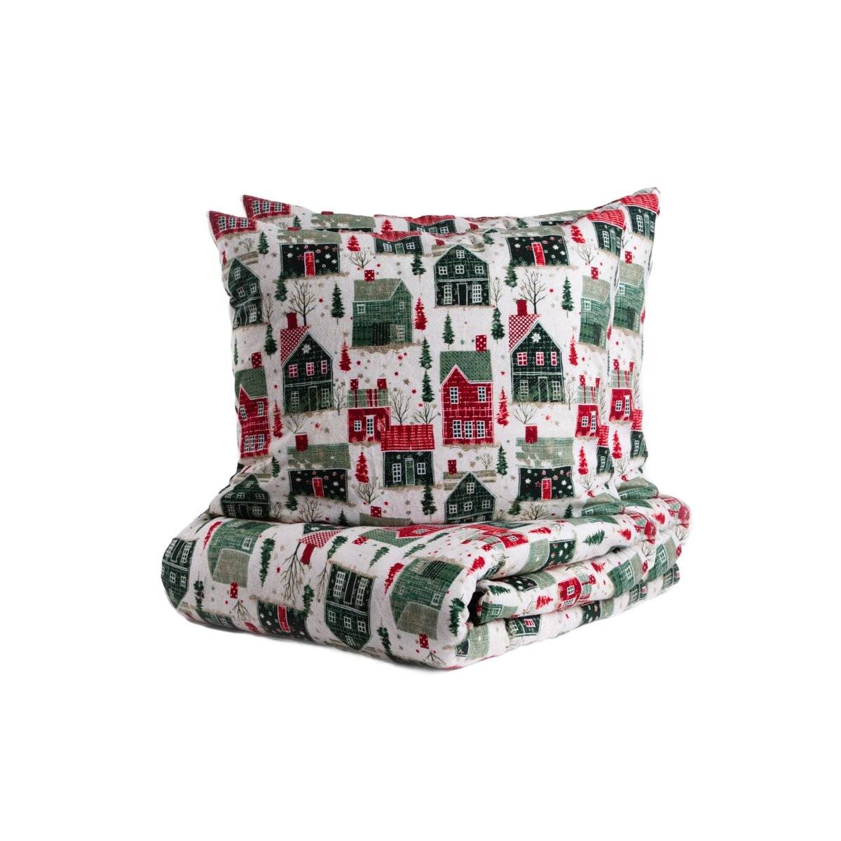 Pościel | GLORA | flanelowa w domki | 160x200 cm | 700514