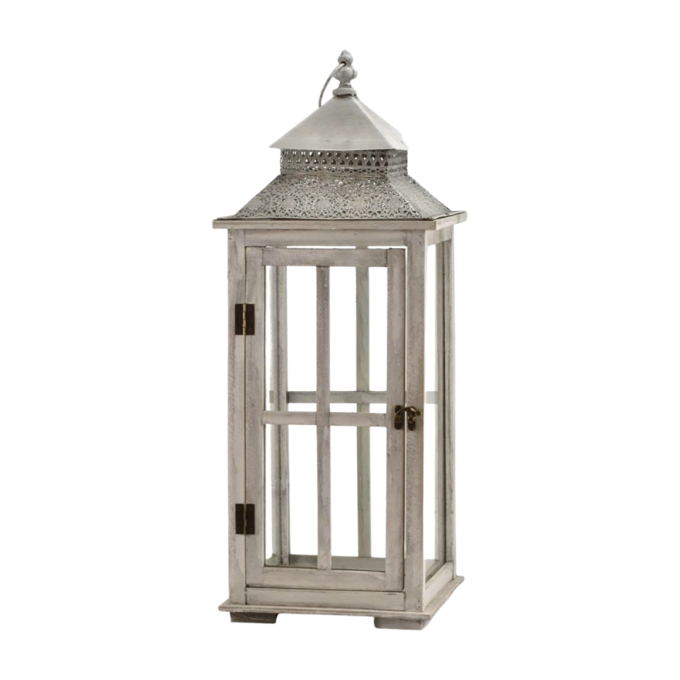 Dřevěná lucerna šedá 65 cm