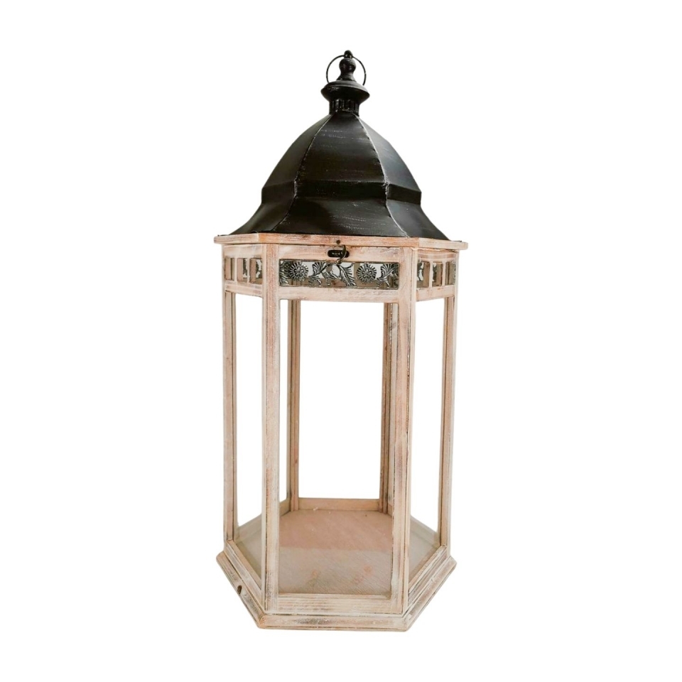 Lucerna má plechovou střechu, která se odklápí.Materiál: dřevo, skloRozměry:velká lucernavýška 76 cmšířka 32 cmhloubka 39 cm prečítať celé
