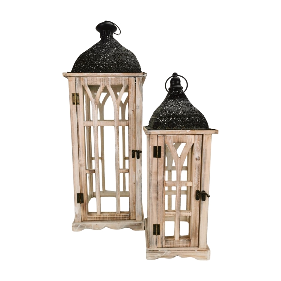 Dřevěná lucerna hnědá s patinou, sada 2 ks