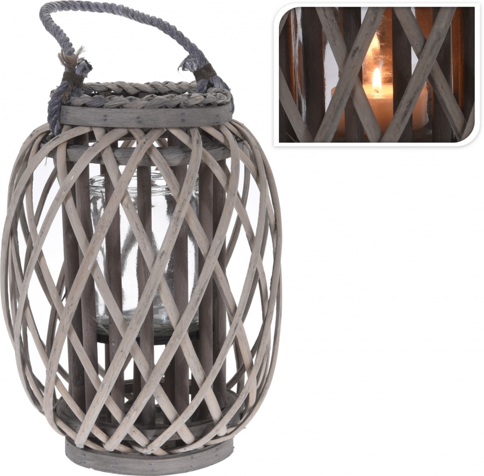 Proutěná lucerna šedá 30x23 cm