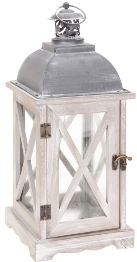 Dřevěná lucerna bílá C, 41x16x16 cm