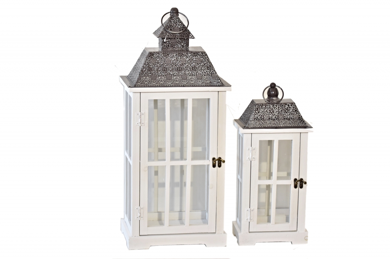 Dřevěná lucerna Alex, sada 2 ks, bílá