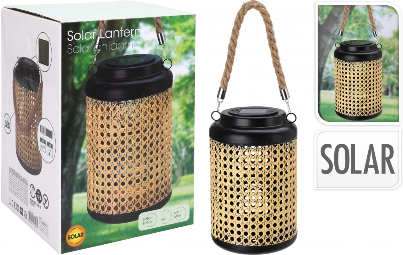 Kovový LED lucena na solární pohon. 2 V solární panel, 1x LED dioda teplá bílá, vypínač on/off, 1x AA Ni-MH 600 MAH baterie.Materiál: kov, plastRozměry:výška 23 cmprůměr 15 cmdélka celkem 38 cm prečítať celé