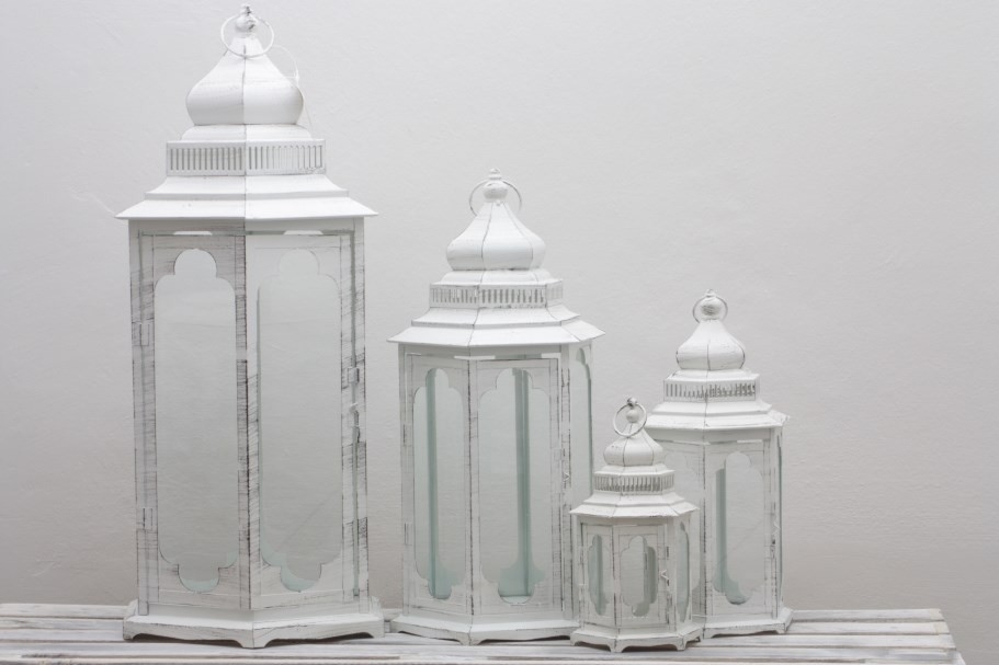 Kovová lucerna bílá sada 4 ks