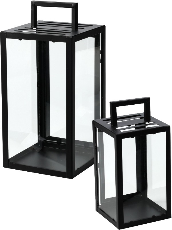 LANTERN, METAL, SET OF 2: 11X23CM AND 15X32CM, EACH WITH HANDLE, BLACK AND NATURAL COLOUR/ LANTERN BLACK 15X32CM(8720573 479325), 150X150X320MM, Hangtag (HT21)/ LANTERN BLACK 11x23CM(8720573 479301), 110X110X230MM, Hangtag (HT21) / CFT 1,38,(6.500/40ft HQ) prečítať celé