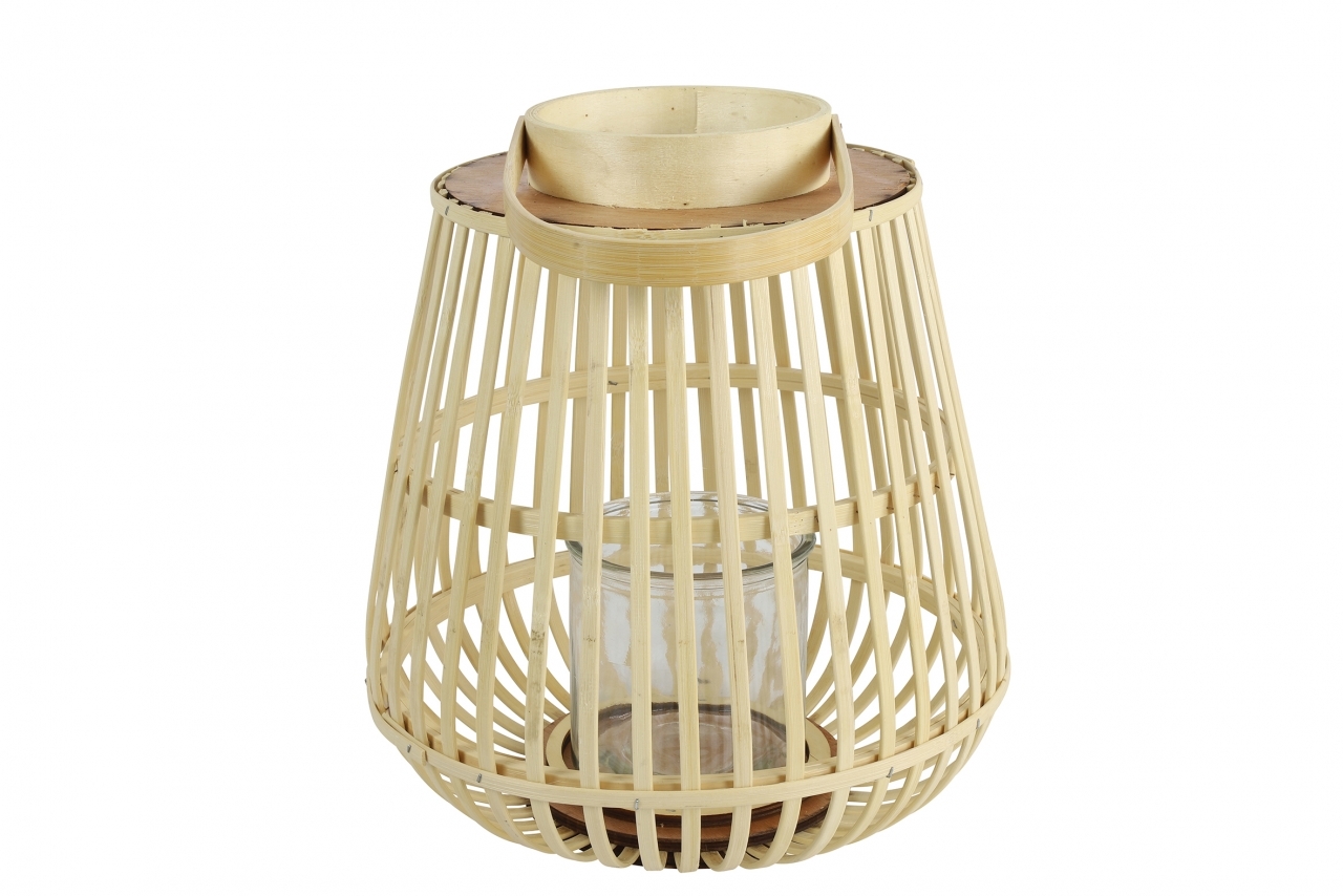 Dřevěná lucerna přírodní Aira M 34x31 cm