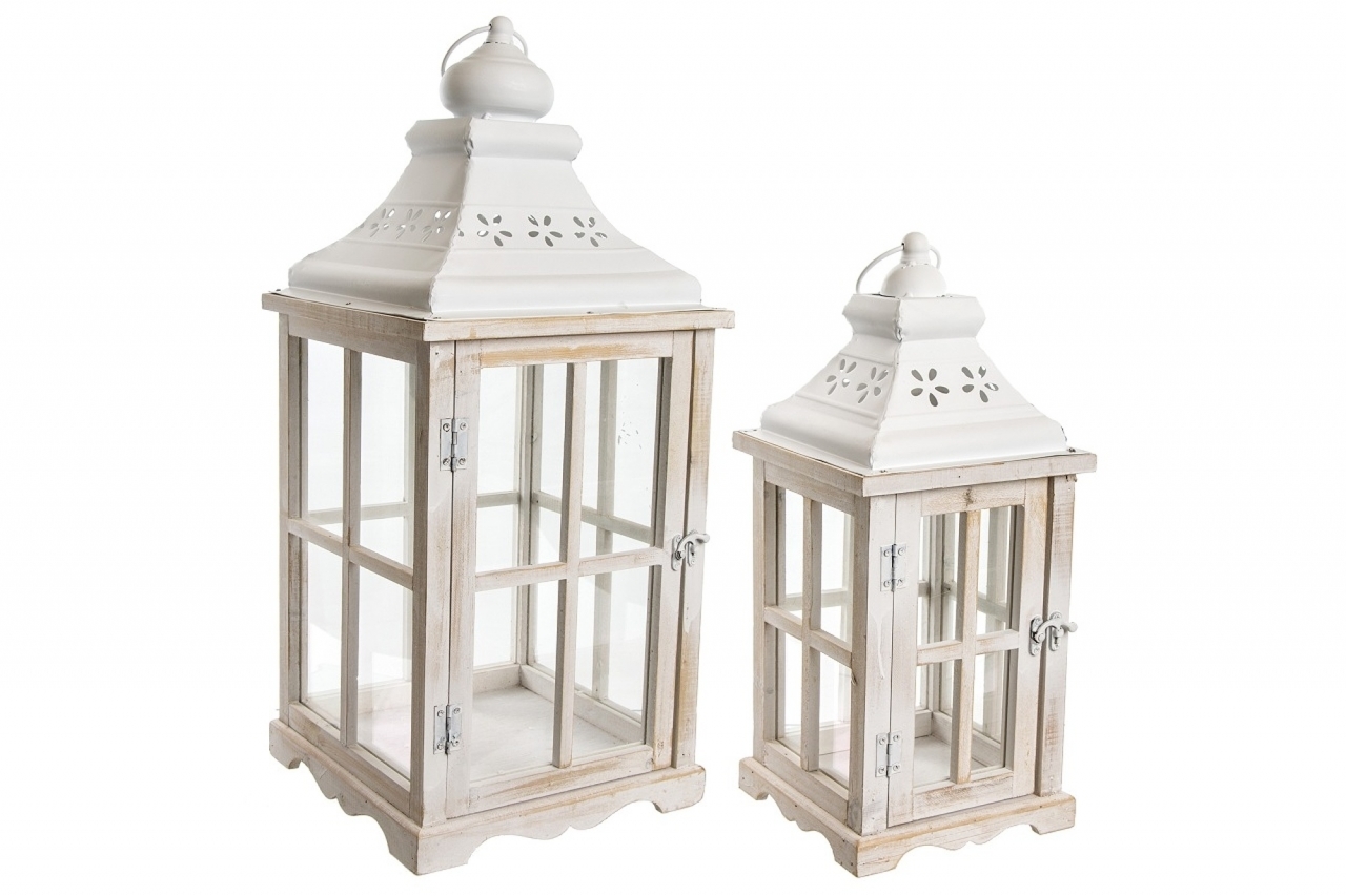 Sada 2 ks dřevěných luceren s kovovou střechou. Lucerny můžete postavit ven do přístřešku i na balkón, vyjímat se bude také doma v ložnici, obývacím pokoji i na chodbě.