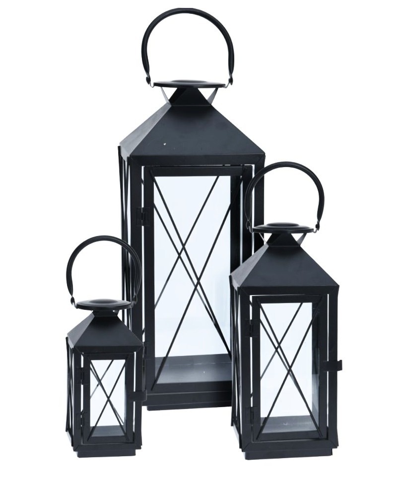 LANTERN, METAL, GLASS, COLOUR: BLACK, SET OF 3 PIECES/ LANTERN METAL LARGE BLACK(8720573 281928), 185X185X470MM, Hangtag (HT21)/ LANTERN METAL MEDIUM BLACK(8720573 288538), 140X140X340MM, Hangtag (HT21)/ LANTERN METAL SMALL BLACK(8720573 288552), 110X110X230MM, Hangtag (HT21) / CFT 1,52,(3.071/40ft HQ)