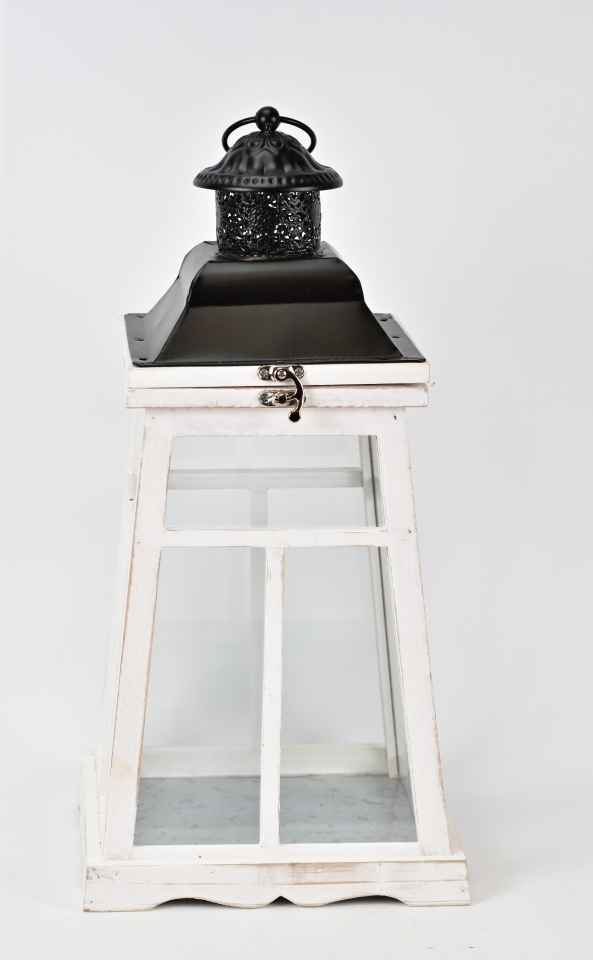 Dřevěná lucerna Poly bílá 45x18x18 cm