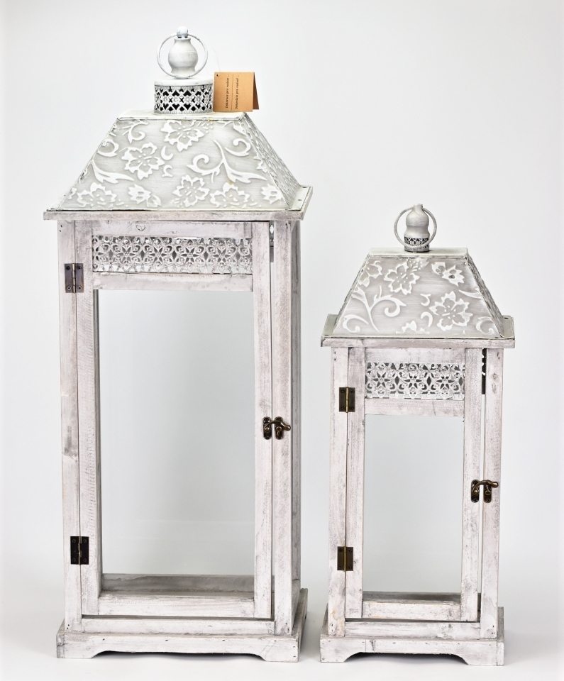 Dřevěná lucerna šedá s patinou, sada 2 ks