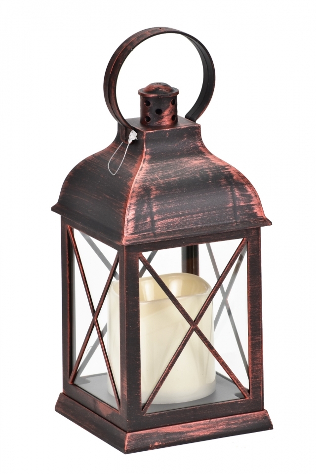 Plastová LED lucerna černá s měděnou patinou 22x10,5x10,5 cm
