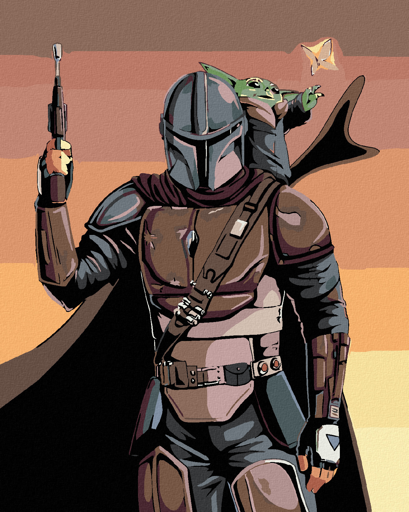 Malování podle čísel - MANDALORIAN A BABY YODA - 80x100 cm, vypnuté plátno na rám