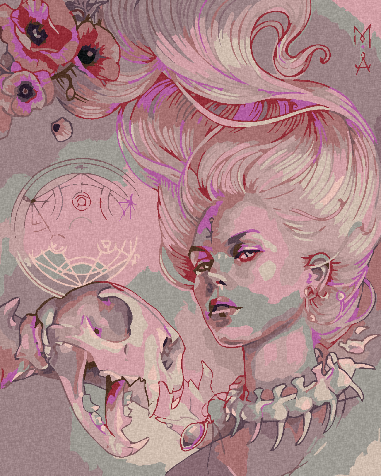Malování podle čísel - RŮŽOVÁ ŽENA S LEBKOU - 40x50 cm, vypnuté plátno na rám