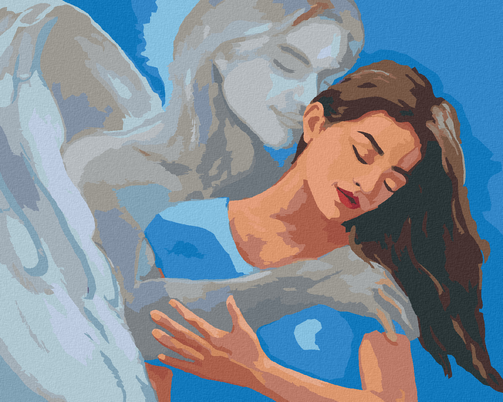 Malování podle čísel - ŽENA V OBJETÍ ANDĚLA - 40x50 cm, vypnuté plátno na rám