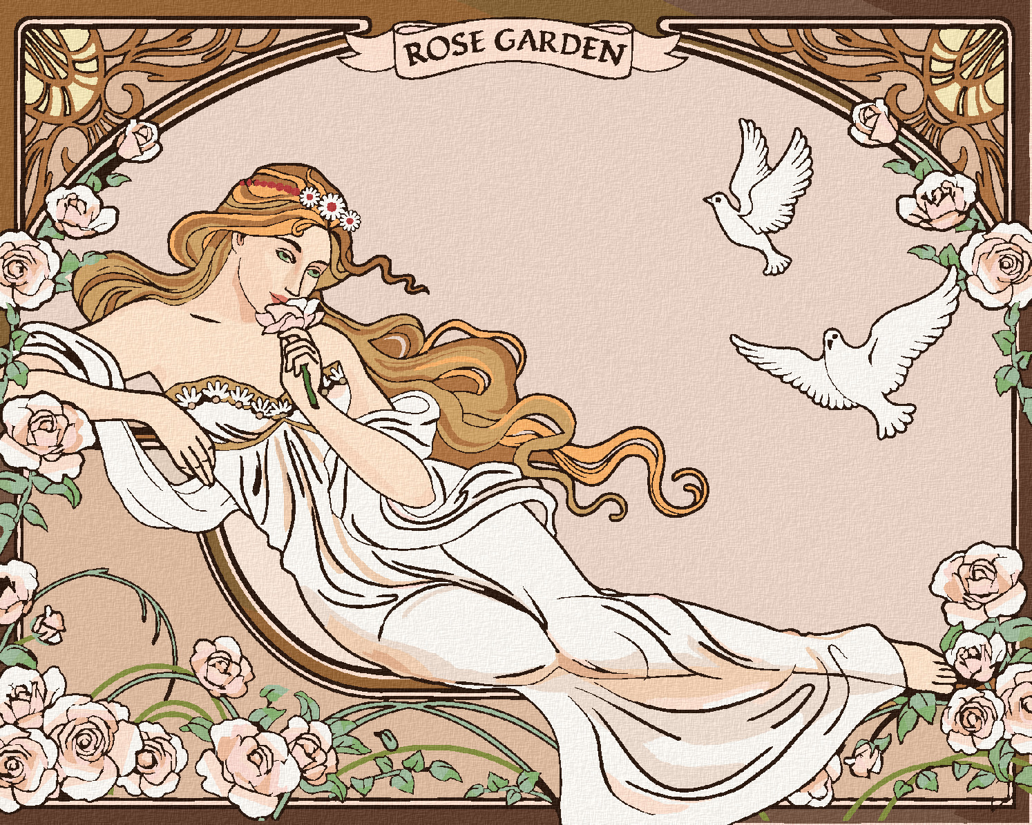Malování podle čísel - REPRODUKCE ŽENA ZAHRADA RŮŽÍ (ALFONS MUCHA) - 40x50 cm, vypnuté plátno na rám