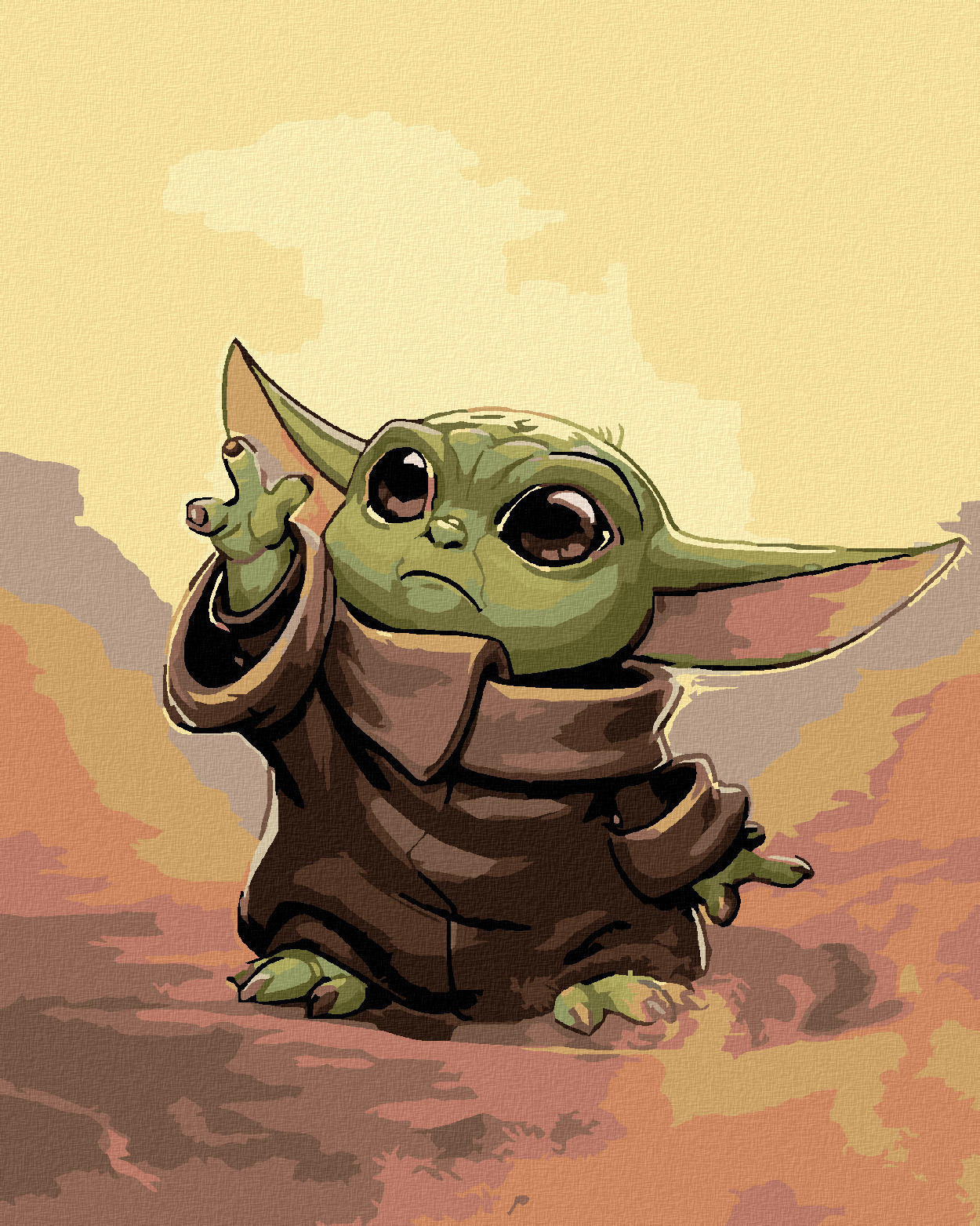 Malování podle čísel - BABY YODA - 40x50 cm, bez rámu a bez vypnutí plátna