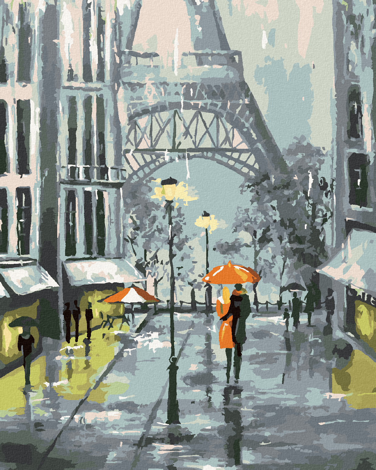 Malování podle čísel - PAŘÍŽ A PROCHÁZEJÍCÍ SE PÁR - 80x100 cm, bez rámu a bez vypnutí plátna