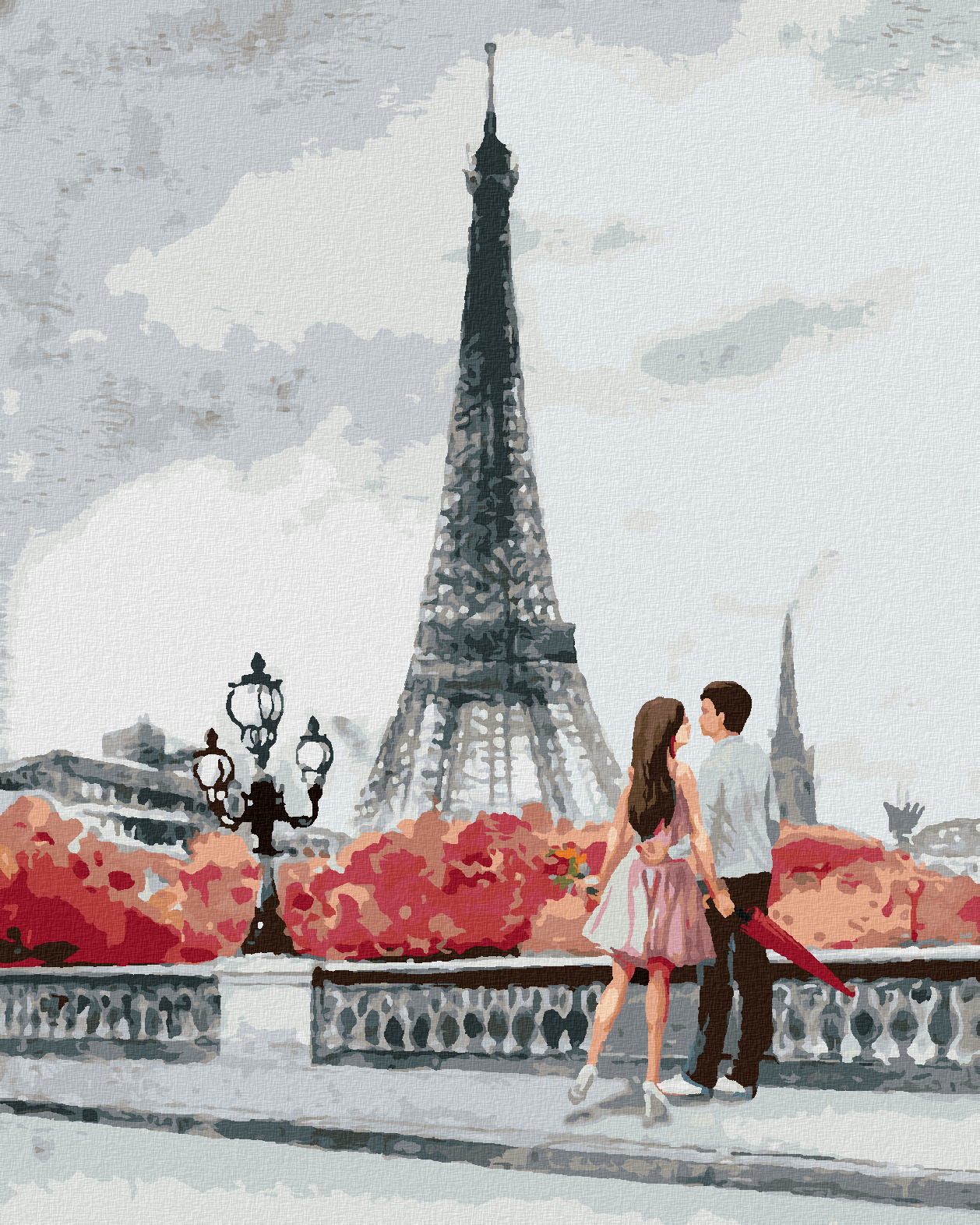 Malování podle čísel - MLADÝ PÁR A EIFFELOVA VĚŽ - 40x50 cm, bez rámu a bez vypnutí plátna