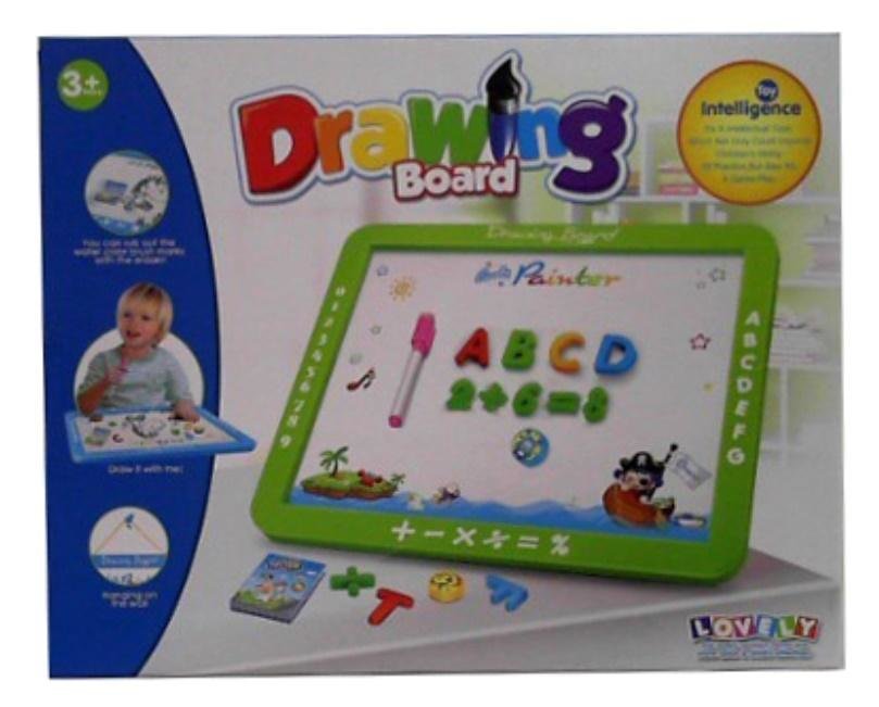 Tablica magnetyczna z dołączonymi literkami, cyferkami i znakami matematycznymi oraz pisakiem suchościeralnym. prečítať celé