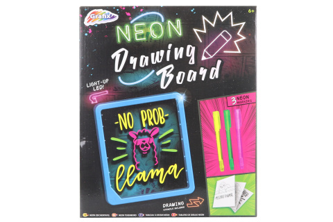 Neonová kreslící tabulka obsahuje: 3 neonové fixy, 3 obrázkové šablony, 1 tabulku s průhlednou fólií. Na tabulku se neonovými fixami nakreslí obrázek a díky zabudovanému světlu se obrázek rozzáří. Tabulka má nožičku k postavení. Napájení 3x AA baterie - nejsou součástí. Rozměr balení cca 30 x 25 x 5 cm. Věk 6+