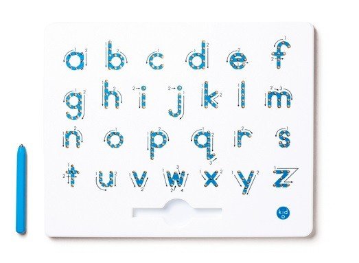 Kid O magnetická tabulka pro nácvik správného psaní malého tiskacího písma složená z magnetických kuliček a pera. Dítě prostřednictvím nakreslených šipek obkresluje magnetickým perem linii písmene správným směrem. Díky působicí síle mezi magnety dítě cítí a slyší, jak vyskakují magnetické kuličky...