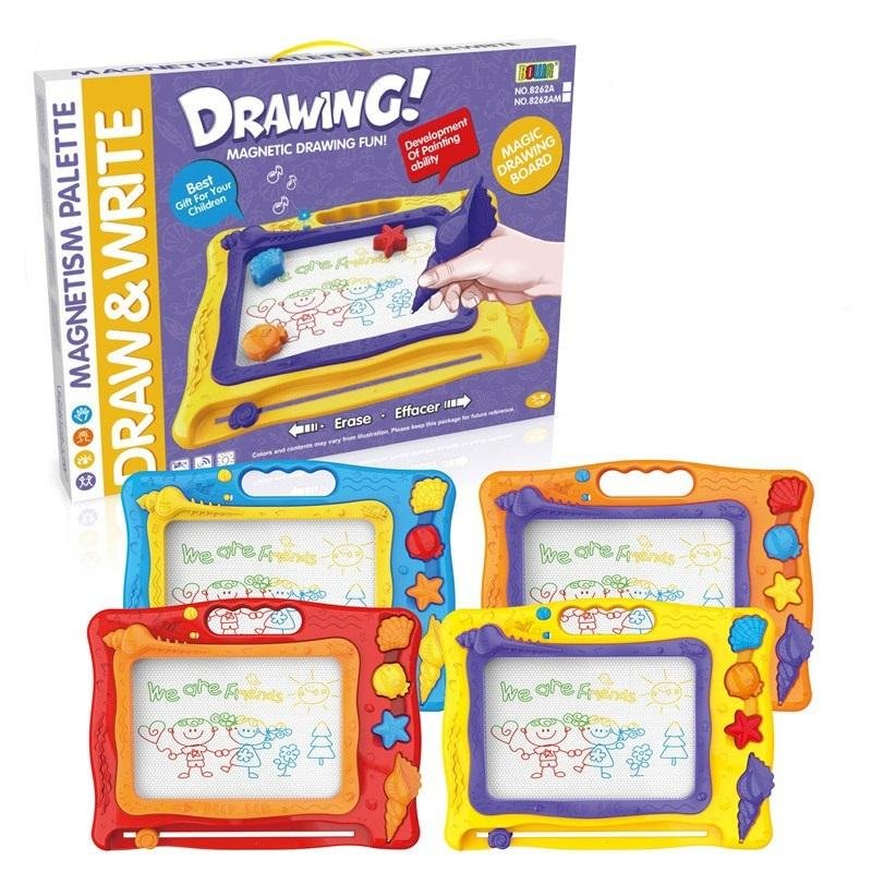 Miks wzorów, towar wysyłany losowo.Tablica znikopis kolor 41x32 cm.Kolorowa tablica znikopis to idealna zabawka do kreatywnego spędzania czasu. Wystarczy delikatne rysowanie na tablicy, by powstały kolorowe rysunki.Suwak u dołu tablicy pozwala w jednej chwili wszystko zmazać i można rysować od...