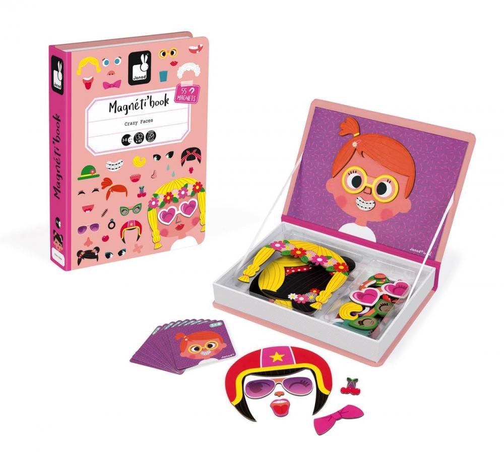 Magnetická kniha skladačka Zábavné tváre Dievčatá Magnetibook Janod od 3 rokov
