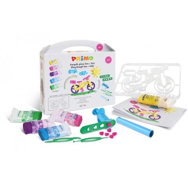 Dárková kreativní sada modelíny a doplňků na tvoření uložena v praktickém uzavíratelném kartonovém kufříku.