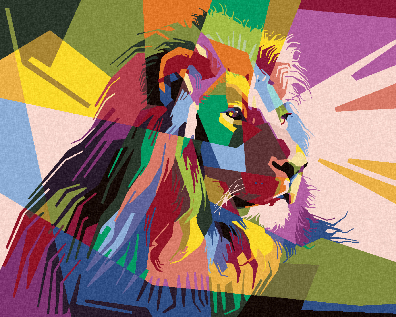 Malování podle čísel - BAREVNÝ LEV Z BOKU - 40x50 cm, bez rámu a bez vypnutí plátna