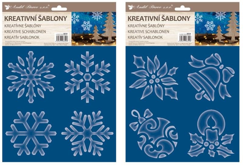 Kreativní šablony - vločky + mix motivů 25x35 cm