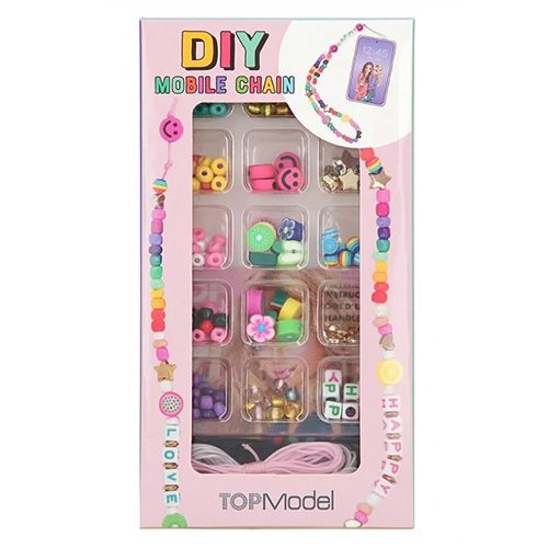 Vytvořte si vlastní přívěsek na telefon s motivy značky Top Model. Sada obsahuje tři šňůrky barvy růžové, bílé a černé každá o délce 2 metrů. V balení naleznete až 225 různých korálku s motivy ovoce, smajlíků a s písmeny na vytvoření slov LOVE, SMILE a HAPPY. Nechybí ani návod. Ozdobte si vlastní telefon! Vhodné pro děti od 6 let.