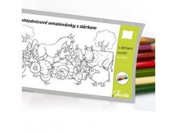 Pohled s dárkem: Omalovánka - Zvířátka s pastelkami