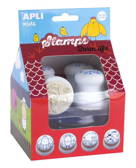 Razítka Farma - 4 ultralehká razítka poduška: modrý inkoust