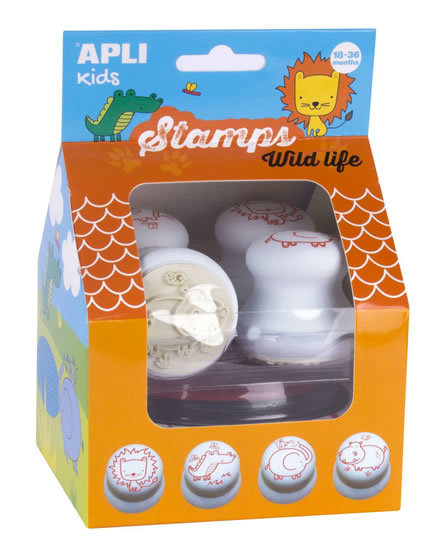 Razítka Divoká zvířátka - 4 ultralehká razítka poduška: červený inkoust