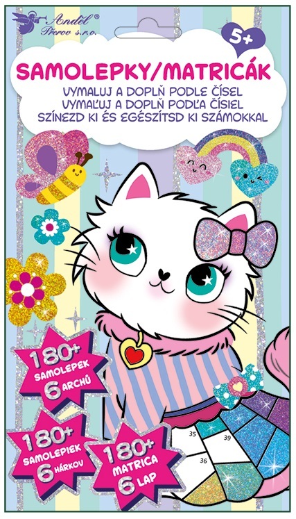 Sada na malování a lepení podle čísel 6 archů, 180 samolepek 14,5 x 25 cm