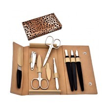 - manikúrová sada s potiskem zvířecí kůže má tvar peněženky s patentovým zapínáním