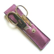 Cestovní manikúrová sada obsahuje:- nůžky na nehty- safírový pilník- šikmou pinzetu- luxusní cestovní manikúrová sada je vyrobena z lesklé syntetické kůže a lesklého niklu- zárukou výjimečné kvality je místo výroby manikúrových nástrojů, které pochází z německého města Solingen