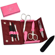 - originální manikúrová sada z růžové semišové látky zdobená kamínky, pro dokonalou úpravu vašich nehtů
