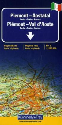 Kümmerly & Frey Karte Piemont, Aostatal. Piemont, Val d' Aoste. Piedmont, Aosta Valley. Piemonte, Valle d' Aosta