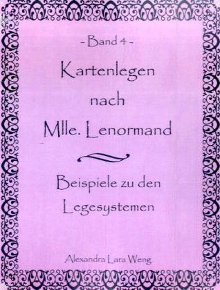 Das 5-bändige Werk lehrt sehr ausführlich das Kartenlegen nach Mlle. Lenormand. Das besondere an diesem Büchern ist, dass bereits Anfänger mit dem ersten Band Erfolge erzielen können, da Deutungen, Kombinationen und Legesysteme aufgeführt sind. Der vierte Band enthält zahlreiche Beispiele zu allen in Band 1 aufgeführten Legesystemen.
