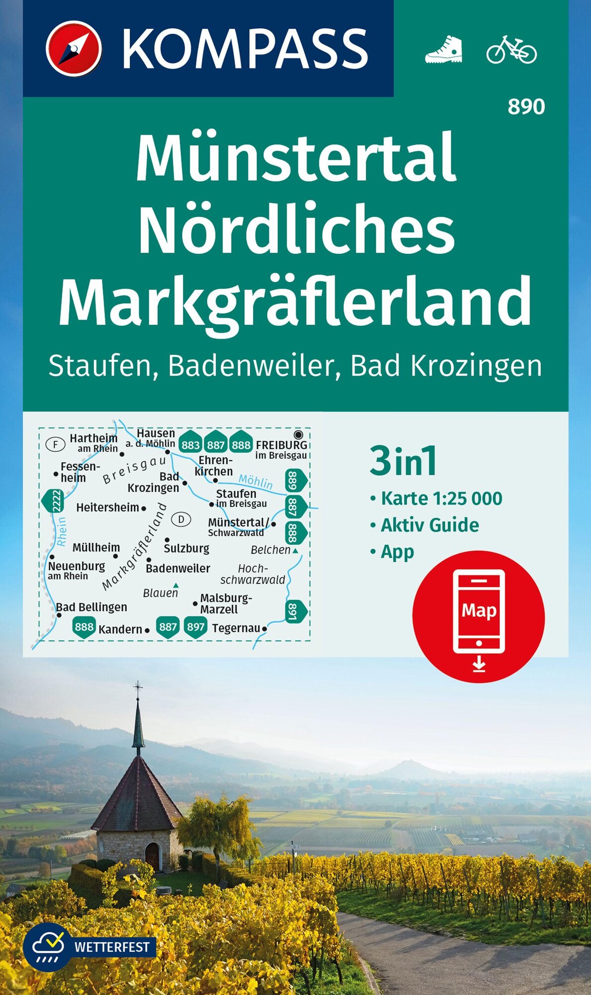 KOMPASS Wanderkarte 890 Münstertal, Nördliches Markgräflerland, Staufen, Badenweiler, Bad Krozingen 1:25.000 (německy)