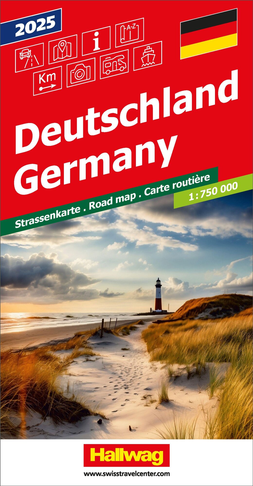 Hallwag Strassenkarte Deutschland 2025 1:750.000 (německy)