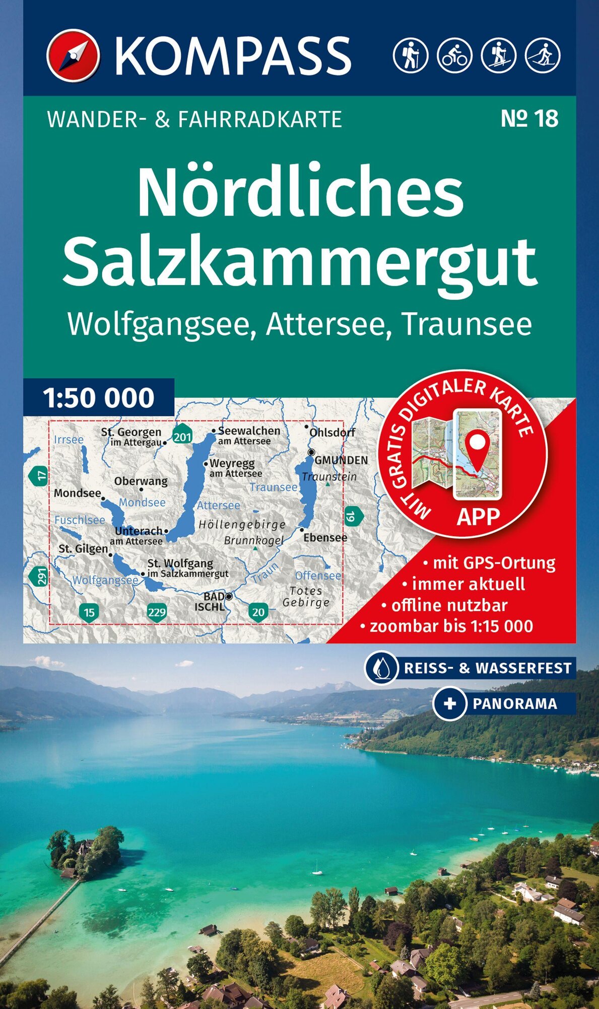 KOMPASS Wanderkarte 18 Nördliches Salzkammergut, Wolfgangsee, Attersee, Traunsee 1:50.000 (německy)